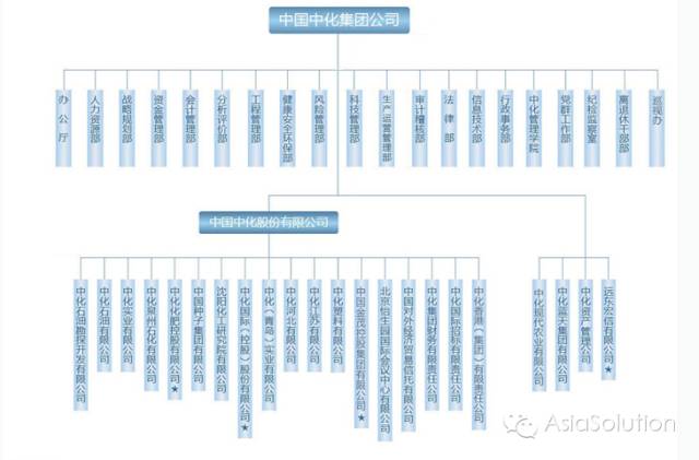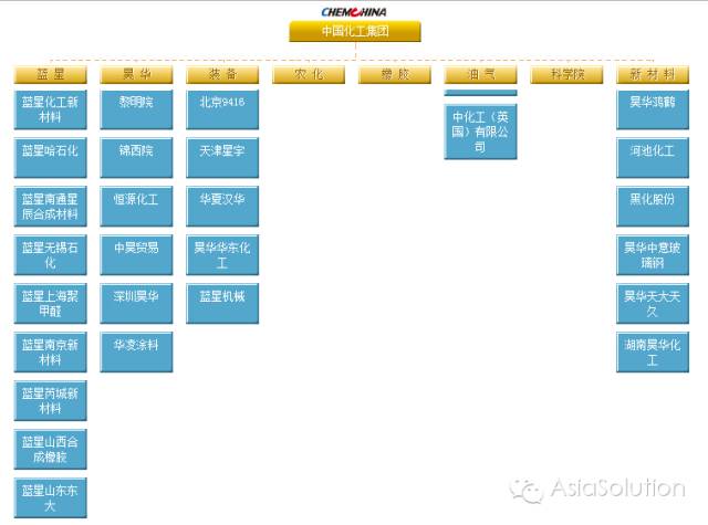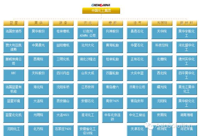 中国化工拥有8家专业公司,下属118家生产经营企业和25家科研设计院所,多项业务和技术在中国乃至世界处于领先地位。拥有12家A股上市公司,4家海外企业。直属企业则如下图所示