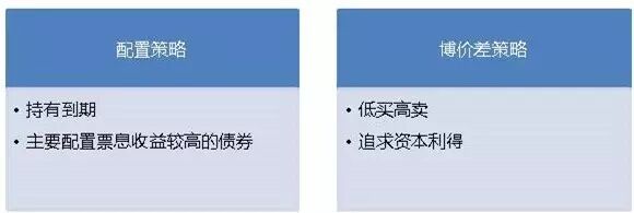 配置策略,就是一种持有到期策略,主要配置票息收益较高的债券,以获取在持有期间所得到的较高的票面利息。因票息收益较高的债券一般为信用债,因此配置策略多持有中短期信用债。