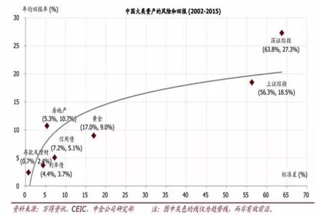 长期来看,资产收益和风险是呈正相关关系,高回报率对应着高波动率,这对中国经济同样适用(见图1和图2)。中国经济增速的放缓,可能会影响资产价格的上涨,或加大同等收益下的波动率水平。因此,未来投资单一资产获利难度将大大提升。相较于投资单一资产,全局性的大类资产配置能够更好的控制风险,提高收益。随着我国金融市场的不断完善,财富的不断增长,投资者的逐步成长,资产配置的需求愈发凸显。
