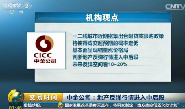 中金公司认为,一二线城市近期密集出台限贷或限购政策,将使得成交超预期的概率走低,基本面呈现缩量涨价格局,我们判断地产反弹行情进入中后段,未来反弹空间看10~20%,建议精选个股:1存量房时代:比如世联行;2价值优选:招商蛇口、华发股份、首开股份、电子城、南京高科、中洲控股。