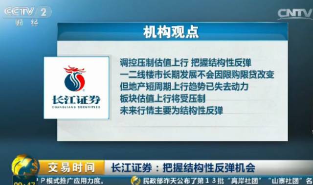 长江证券认为,调控压制估值上行,把握结构性反弹。核心一二线楼市长期发展不会因限购限贷改变,但地产短周期上行趋势已失去动力,板块估值上行将受压制,未来行情主要为结构性反弹,建议从全国区域龙头,国企改革,转型个股三条主线把握反弹机会。