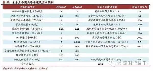冷链物流网络分为冷链宅配和冷链干线两大部分,宅配所需的中小型冷库投资规模小,受到生鲜电商的拉动容易放量,大中型冷库投资也进出上行通道,目前国内已有冷库容量在1800万吨左右,中国的大部分省市冷库资源还是缺乏的,我们预测未来五年内冷链宅配需求为900万吨,冷链干线冷库总需求为1450万吨,总需求有2350万吨,因此容量的需求有翻倍的空间。