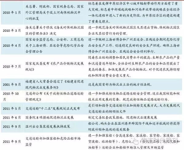 早在09年的时候,中央就已经确立了十大产业振兴规划,物流业作为唯一一个服务领域的产业位列其中。2010年,党的十七届五中全会《关于制定国民经济和社会发展第十二个五年规划》再次强调加快转变经济发展方式,扩大内需、增加消费、大力发展服务业是重要内容,为物流业发展提供强大的动力。