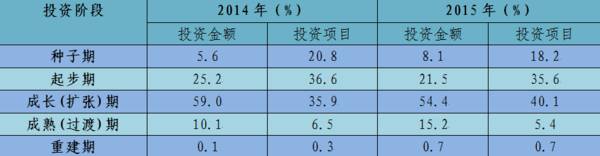 表2 中国风险投资项目所处阶段分布:投资金额与投资项目(2014-2015年)