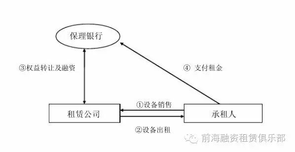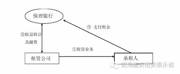 在此模式中,租赁公司先支付购货款项,然后在银行对已形成的租金进行保理。用以解决“承租人(如中国电信)实力强大供货商弱小”租赁交易架构中的“收款”问题。