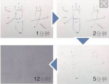 其实,这种笔芯没有什么神奇之处,其原理非常简单:即利用墨水的显色因子与空气中的氧发生反应,使之消色。这类笔写出来的字迹,会根据材质、温度、湿度、书写速度等差异而在15分钟至2日内自然消失。