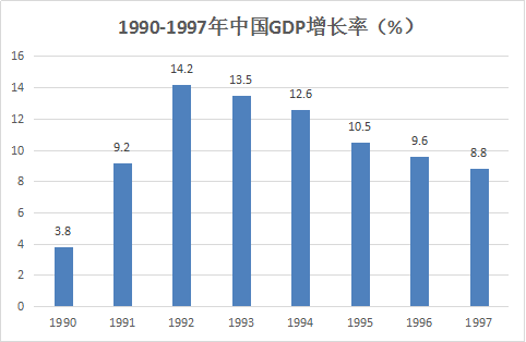 1990年,中国特色的社会主义市场经济体制拉开大幕,各地涌现“下海”热潮,中国经济发展开始如日中天,GDP保持着高速的增长率,人均收入快速增长。这场不期而至的经济危机如愿化解。