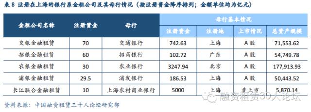 而注册在北、上、广、天津,尤其是上海、天津的银行系金租公司,其参股银行基本上是资产规模庞大的“大巨头”,以国有商业银行和股份制商业银行居多。