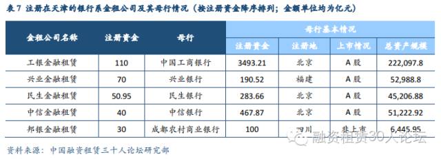 母行资产规模排名前十的金租公司,各有四家分别注册在天津和上海,另各有一家分别注册在北京和湖北。