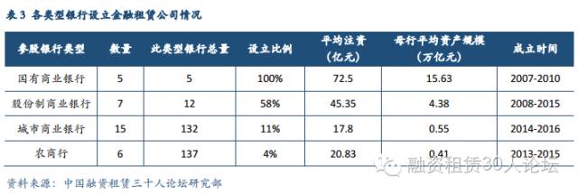 截至2016年6月末,共有33家银行业金融机构主导发起设立了金融租赁公司。