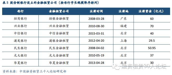 股份制商业银行已经注册成立的金租公司分别为:兴业金租、招银金租、民生金租、中信金租、光大金租、华夏金租和浦银金租,其平均注册资本金45.35亿元,母行去年末平均资产规模4.38万亿。