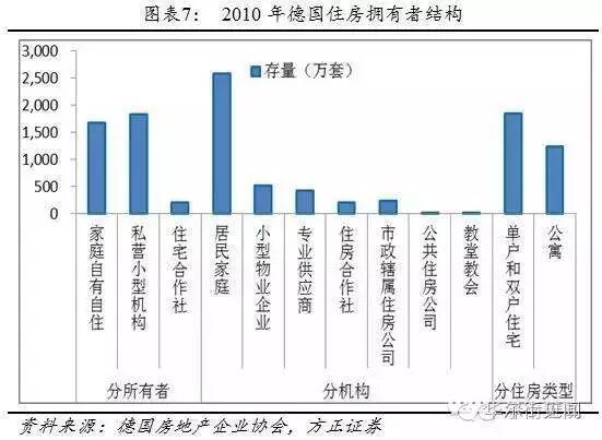 住房拥有率较低,租房比例较高。德国住房拥有率较低。德国首都柏林的公寓价格相比英国首都伦敦、法国首都巴黎较低,约为其的六分之一、四分之一。可能是由于柏林的经济活力稍弱,但是即便是慕尼黑、法兰克福的住房价格相比欧洲其他国家都不是很高。德国的住房拥有率平均一直在40%多,有一半多的家庭均通过租房解决住房问题。欧盟的住房拥有率平均约为63%,比德国高19个百分点。欧盟的一些国家住房拥有率非常高,如西班牙为85%、希腊80%、意大利75%、葡萄牙65.2%。这些住房拥有率较高的国家也是在2008年的金融危机中损失较为严重的几个国家。