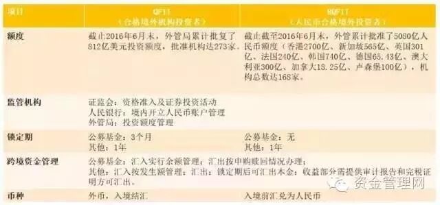 (3)锁定期:QFII的美元投资,公募基金要锁定3个月,其他产品要锁1年;RQFII投资的公募基金没有锁定期。