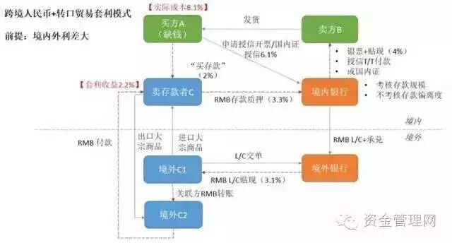 这里讲的是转口贸易跨境人民币套利模式,主要就是一个利差套利。如果融资币种是美元等当时相对于人民币贬值的货币,我们还可以参与汇差套利。