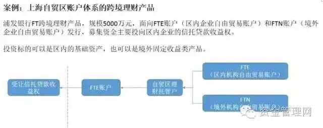 这个案例的介绍材料可以在银监会主页上查到。FTA账户跨境理财产品规模5000万人民币,发售对象是区内企业(FTE账户)或境外企业(FTN账户)。理财产品募集资金进入托管账户,受让境内区外的信托受权益。所以,这个理财产品可以把境外的资金引进来。由于自贸区内FTE账户资金与境外账户资金自由划转,这种理财产品募集的资金也可以用于境外投资。