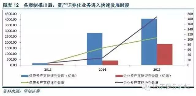 信贷资产证券化实施备案制+注册制。2014年11月20日,银监会发布《关于信贷资产证券化备案登记工作流程的通知》,宣布针对信贷资产证券化业务实施备案制;2015年1月4日,银监会下发批文公布27家商业银行获得开展信贷资产证券化产品的业务资格,标志着信贷资产证券化业务备案制在实操层面落地;3月26日,人民银行发布《关于信贷资产支持证券试行注册制的公告》,宣布已经取得监管部门相关业务资格、发行过信贷资产支持证券并且能够按照规定披露信息的受托机构和发起机构可以向央行申请注册,并在注册有效期内自主发行信贷ABS。 企业资产证券化实施备案制+负面清单管理。2014年12月26日,证监会发布《资产支持专项计划备案管理办法》,开始针对企业资产证券化实施备案制,同时配套《资产证券化业务风险控制指引》和《资产证券化业务基础资产负面清单指引》,提出8类负面清单,大大拓宽了发行人及基础资产的可选范围,促进企业资产证券化在2015年高速发展。