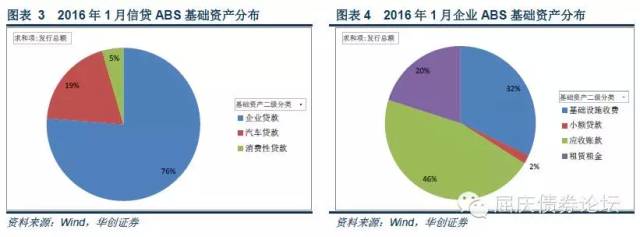 2016年1月,银监会主管信贷资产证券化产品共发行7只,发信规模155.43亿元,其中规模最大的是广发银行作为发起机构发行的启元2016年第一期信贷资产支持证券,发行规模52.01亿元,规模最小的是中银消费金融作为发起机构发行的中赢新易贷2016年第一期个人消费贷款资产支持证券,发行规模6.99亿元。证监会主管企业资产证券化产品共发行15只,发行规模107.42亿元,其中规模最大的是房地产开发商增城碧桂园作为发起人发行的碧桂园应收款资产支持专项计划,发行规模29.46亿元,规模最小的是易汇资本(中国)融资租赁有限公司作为发起人发行的易汇资本一期租赁资产支持专项计划,发行规模1.55亿元。