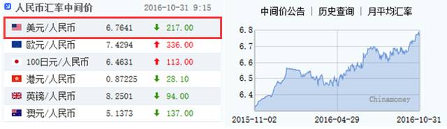 来源:华尔街见闻今日人民币兑美元中间价大幅上调217个基点,报6.7641,上调幅度为逾一个月最大。上一交易日(10月28日)中间价报6.7858,曾创六年新