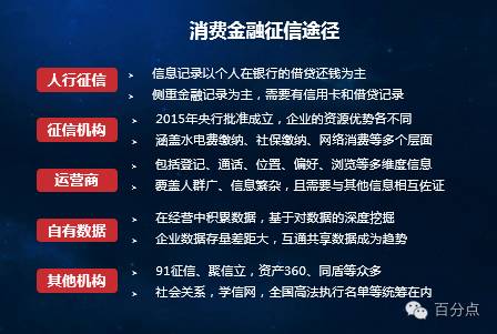 个人信用数据在人行、个人征信机构、电信运营商、消费金融服务商等都有分布,任一单一的数据源都难以做到完全精准;
