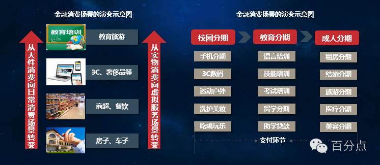 从校园分期的发展来看,无论内部的业务拓展还是外部人群拓展,场景都是依托; 场景与消费金融结合最亲密的是在支付环节,未来支付的价值将会被重视。