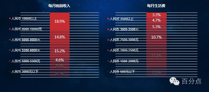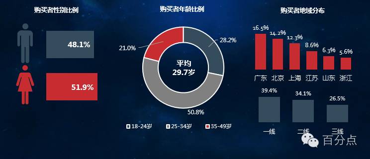 多数来自一线城市及东部沿海省份,经济发达地区接受程度较高;消费者职业以普通职员、企业中层管理人员和在校生为主,工作人员的税前收入在6000以上,学生生活费在1500到2000元区间的人数最多。