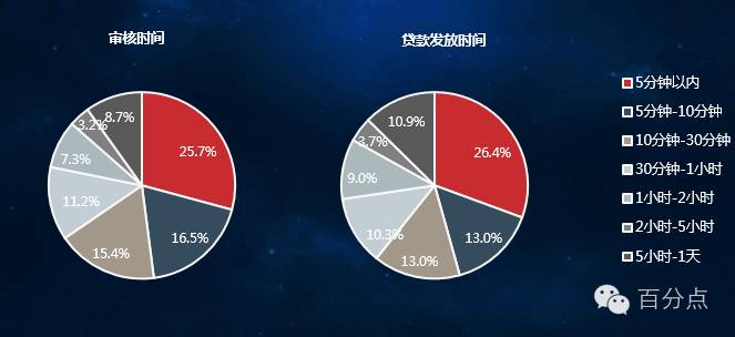 消费金融审核及发放贷款的时间较短,审核30分钟以内占整体57.6%。