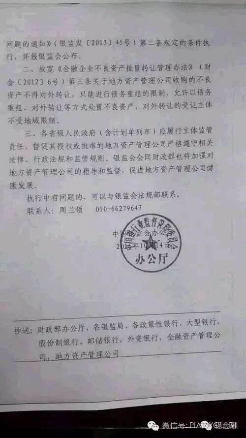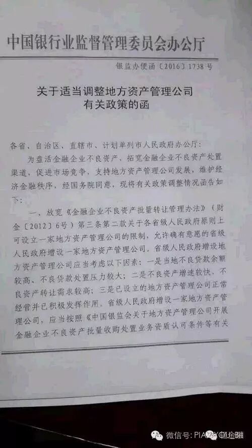 附:银监会办公厅发布《关于适当调整地方资产管理公司有关政策的函》(银监办便函〔2016〕1738号)