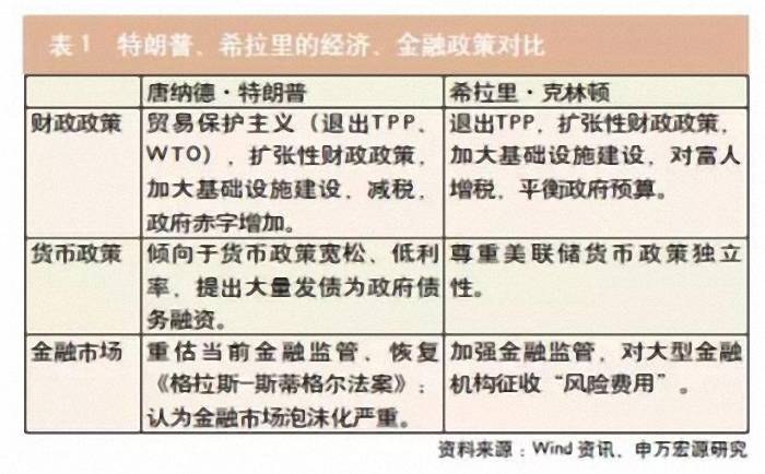 在此,我们讨论的是,如果希拉里或特朗普当选美国总统,会分别执行怎样的财政政策、货币政策、金融市场政策,并形成怎样的市场预期,以及这些预期对美元汇率、货币市场、资产定价可能造成的影响。