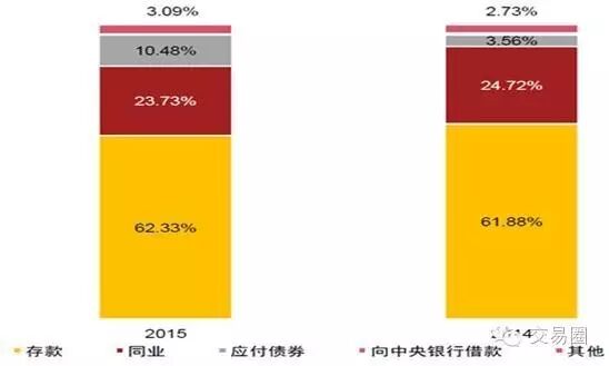 (一)主动负债迅速增加,为同业业务提供资金来源