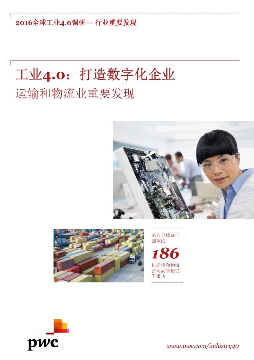 普华永道日前发布了《2016全球工业4.0调研: 运输与物流业的重要发现》,该报告剖析了来自全球26个国家的186位运输和物流公司高管的详细观点,并提出了打造数字化企业的主张。
