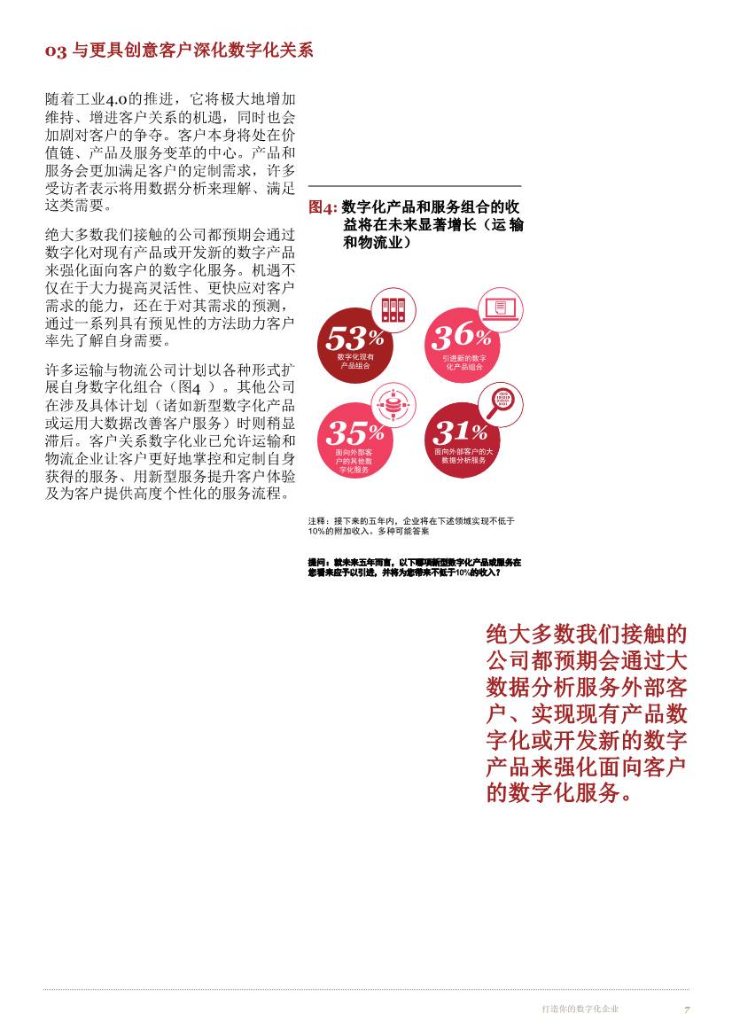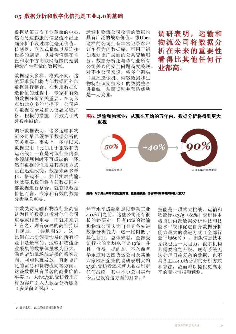 报告指出,在全球顶尖企业的表象之下,一场意义深远的数字化转型正在酝酿,运输和物流业也不例外。从经营活动采购到客户服务,企业正对自身内部垂直价值链以及供应链沿线水平合作方的基础职能进行数字化改造。此外,企业还通过数字功效强化产品组合,并引进基于数据的创新型服务。