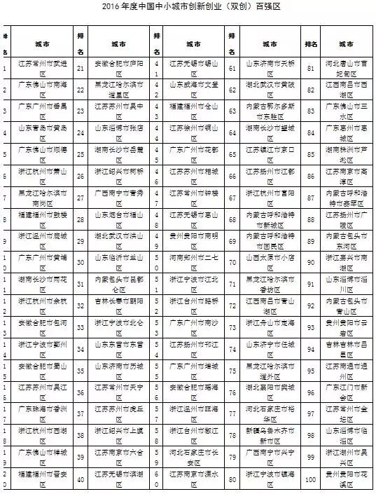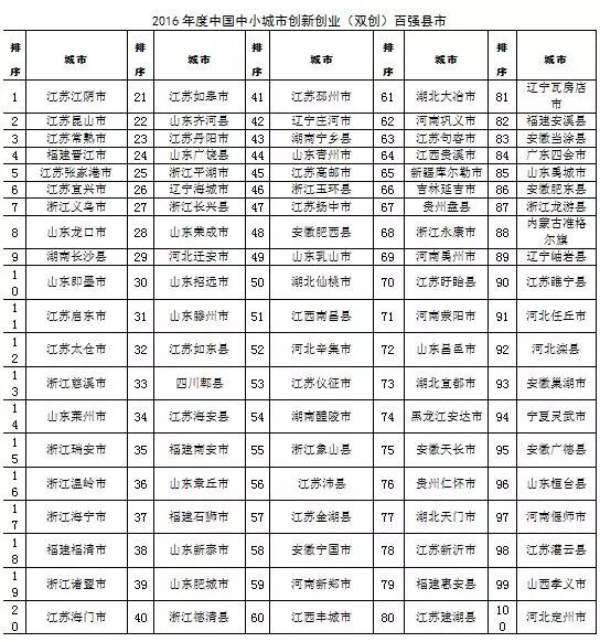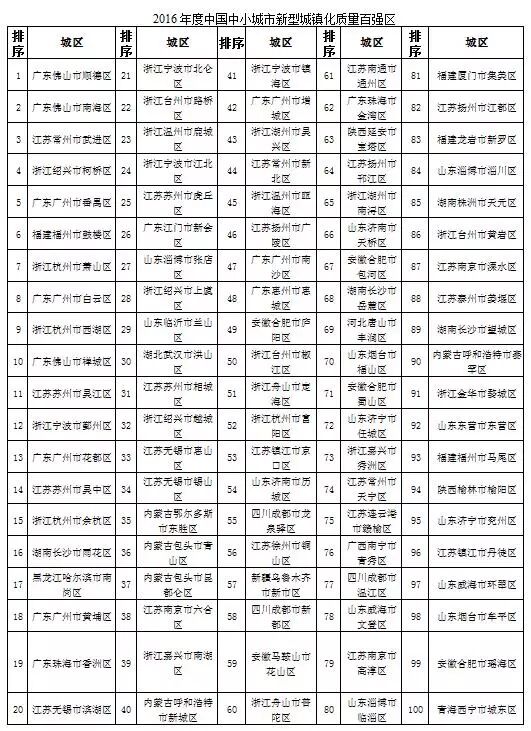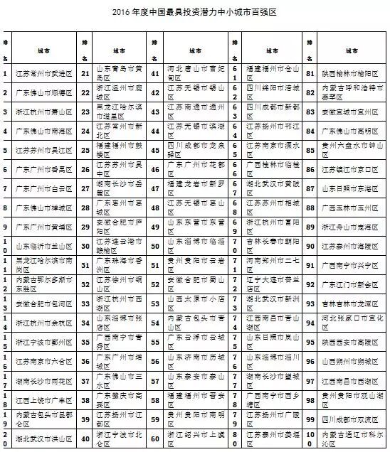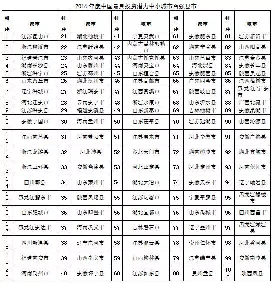 2016年全国综合实力百强县、百强区榜单出炉!