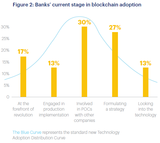 埃森哲《区块链:银行如何构建全球实时支付网络》援引一些受访银行高管的话称"我们感到眩晕,不过愿意学习。"还有些受访人称"你给一些银行工作人员解释区块链是什么,他们可能很快能理解,但是给另外一些人解释,可能就要花很多时间精力,而后面这种人往往是有决策权的人。"另外有些表示,"我们只是在探索,还谈不上在测试。"