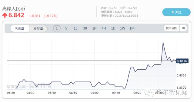 一是美元指数反弹导致人民币顺势下跌。随着特朗普在大选中胜出,美元一度跌到96,不过于9日午后开始强势攀升,突破98整数关口,离岸人民币兑美元随之大跌。