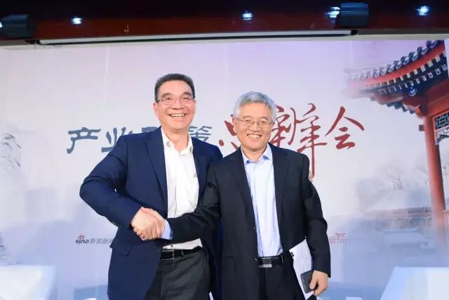 ▲ 产业政策思辨会结束后,林毅夫教授与张维迎教授合影留念。图片来源:北京大学国家发展研究院