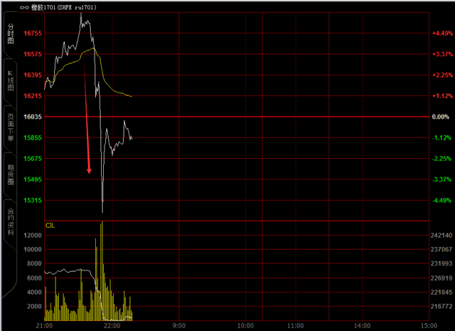 周五夜盘,黑色系和有色系整体上还是比较强势,一度大面积涨停。但过去二十分钟内期货遭遇一波急跌,连焦炭等强势品种也出现下挫,棉花和橡胶更是几分钟内从涨停到跌停!