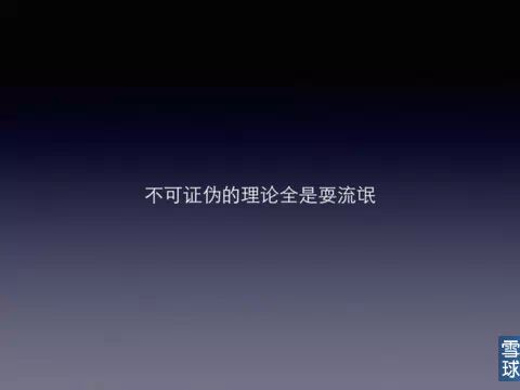 这些理论通通称为“不可证伪的理论”。我的观点就是不可证伪的理论全都是耍流氓,没有任何意义,虽然它看上去很厉害,这跟卡尔·萨根的龙其实是一个意思。市面上有很多这样的东西,暗含黄金12宫的变化,走势是天人合一的外在表现,信的人很多,天地大道循环往复的表现,然后就扯一堆古籍出来。不巧的是我研究过古籍,通常说法都是毫无道理,所以不可证明的理论全部都是耍流氓。
