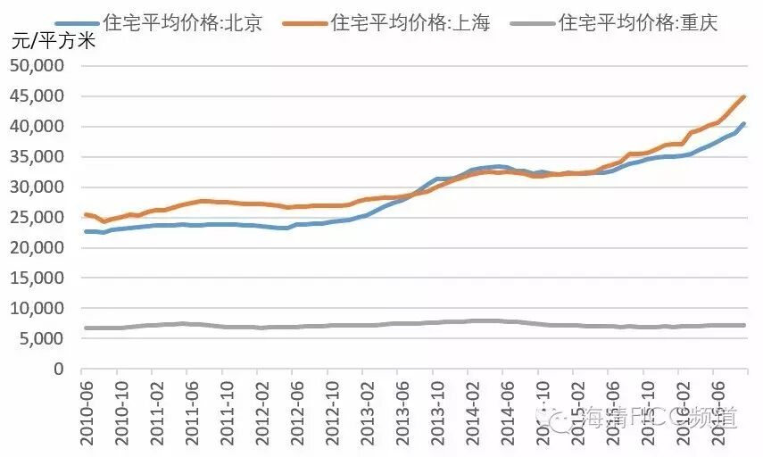 图2 北京、上海房价飙涨,重庆房价基本不变