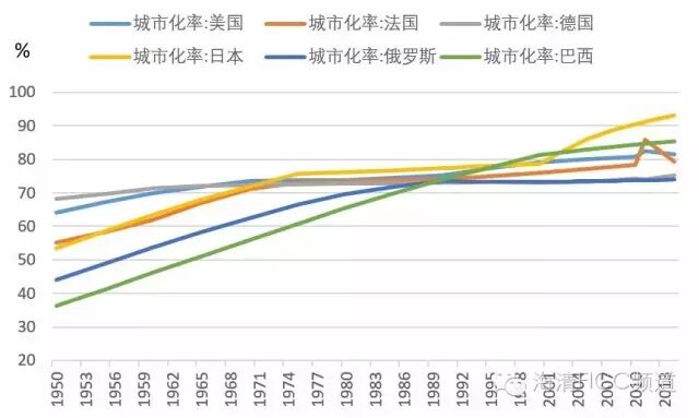 从国际经验来看,无论是发达国家还是发展中国家,城镇化率至少要达到70%以上,城镇化才算接近尾声,而中国距离70%还有极大的差距。