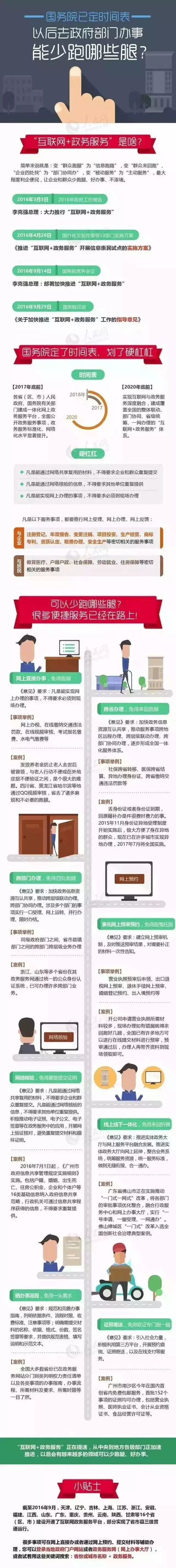 国务院大力推行“换联网+政务服务”,到2017年底前,各省(区、市)人民政府、国务院有关部门建成一体化网上政务服务平台;2020年底将实现互联网