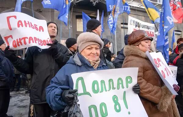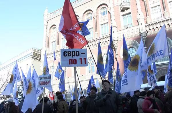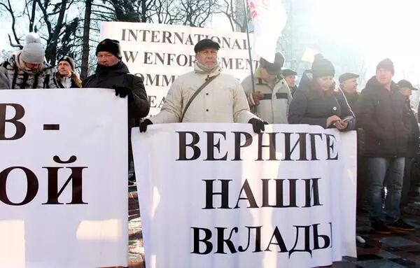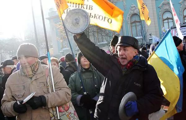 当地时间2016年11月15日,乌克兰基辅,乌克兰多家私人和国有银行破产倒闭,储户示威抗议,要求还钱。银行的倒闭势必会影响乌克兰经济体,外贸与货