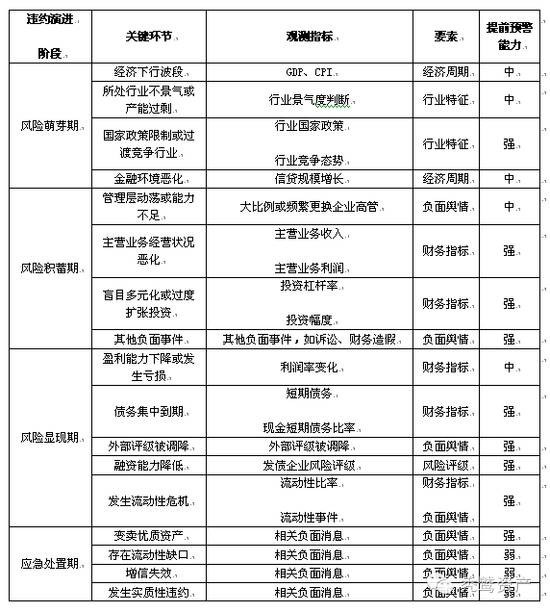 2、风险积蓄期:管理层经营不善、投资决策失误等内部因素的诱发下,违约风险逐步显性化。