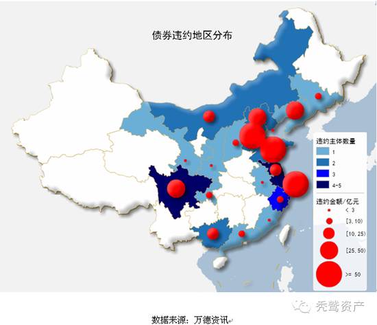 4、地域:东南沿海、华北和西南省份较集中,东北地区虽违约主体家数不多但金额较大。