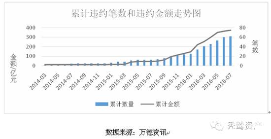 自2014年超日债券违约后,市场开始出现少量债券逾期,2015年的违约笔数和金额明显上升,累计违约24笔、128.7亿元,2016年2月以后违约数量和金额分别猛增至62笔、376.3亿元(截至7月)。虽然近期山西煤炭企业在政府支持下成功发行新债挺过难关,但随着经济环境整体下行,经济转型尚未完成,债券违约趋势的延续是大概率事件。