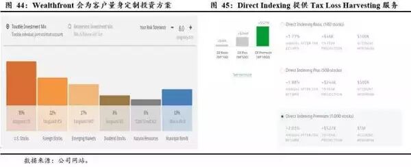 迈向智能:美国的Wealthfront,Betterment开创了人工智能理财产品的先河,即通过优化程序为客户“量体裁衣”,设计组合配置策略;近年来美国大型资管机构也在跟进,如资管巨头Vanguard近年也在大力推进人工智能理财产品。