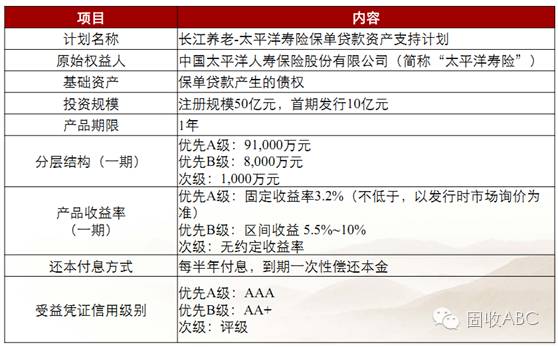 11月10日,“长江养老—太平洋寿险保单贷款资产支持计划”在上海保险交易所(保交所)正式挂牌发行并交易,成为保交所自今年6月揭牌以来第一单产品(当然也是第一单ABS)。