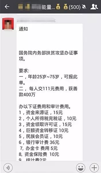 一些诈骗微信群里的骨干成员在群里声称,被警方查办的都是假借“民族资产解冻大业”名义行骗,而他们自己是真正的“民族资产解冻大业”有功人员,是受到保护的。如此“贼喊捉贼”,继续蒙骗群里的受害者。