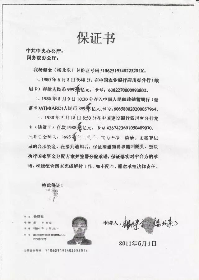 现今,这个传说变成了解放初期被美国冻结资产流落海外,现在巨额资金需要‘洗钱’”的说法,以历史上确实存在的《5·11中美关于解除财产冻结协议》等重大历史事件作为“托”,再辅以伪造政府文件印章、信物来欺骗诈骗对象。