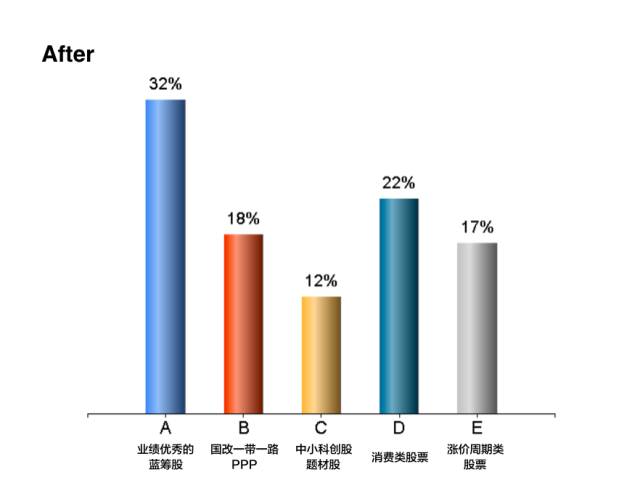 从投票结果中不难发现,在演讲开始之前,大家的观点各异,无论是业绩优秀的蓝筹股、体现国家意志的国改一带一路ppp、中小科创题材股,或是涨价周期股票,投资者们都认为存在一定的空间。