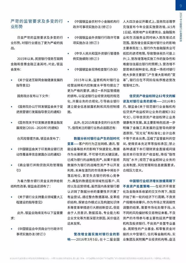 来源:KPMG《2016年中国银行业调查报告》是毕马威第十次发布面向中国银行业的年度调查报告,本期报告继续保持了以往年度的编写惯例,汇集了近期中